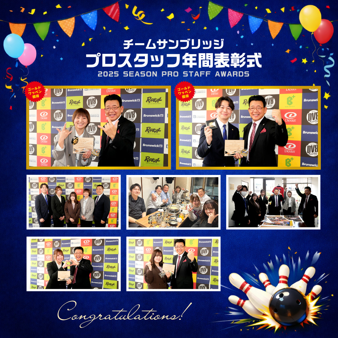 サンブリッジでは、今後もチームサンブリッジ所属プロスタッフの活躍を支え、ボウリング競技の発展に貢献してまいります。